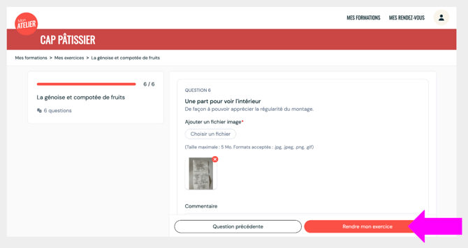 - Après avoir renseigné toutes vos réponses, cliquez sur "Rendre mon exercice".