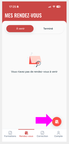 - Cliquez sur le bouton rouge pour prendre un nouveau RDV