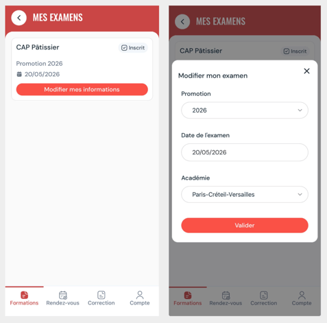 déclarer votre inscription à l'examen (étape essentielle) - Disponible pour certaines formations uniquement